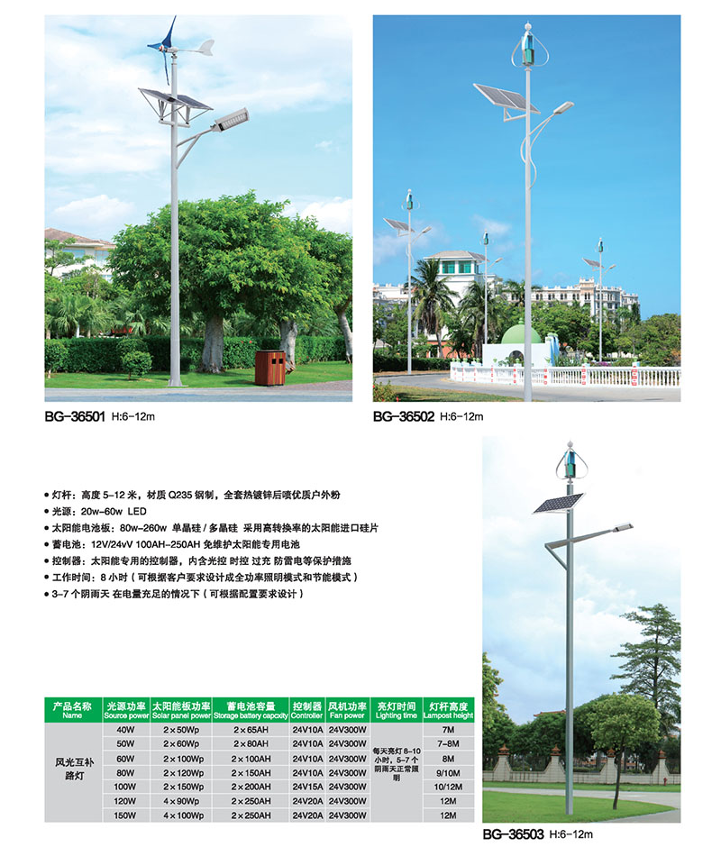 微風(fēng)感應(yīng)風(fēng)光互補太陽能LED路燈詳細(xì)介紹: