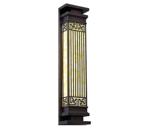 (QDQBD-YS016)戶外鍍銅拉絲仿古銅云石墻壁燈實拍效果圖片: