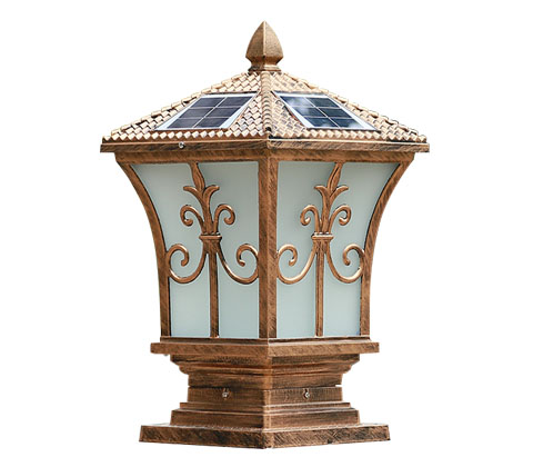 (QDTYN-ZT001)別墅戶外圍墻太陽能柱頭燈亮燈實景圖: