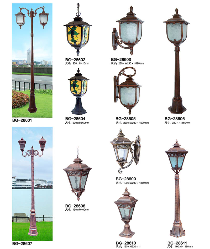 * 庭院燈可根據(jù)照明需求自由選擇:?jiǎn)晤^庭院燈、雙頭庭院燈