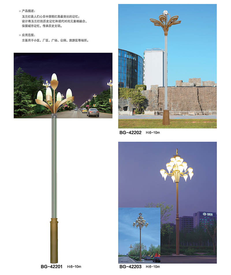 定制6米-12米玉蘭景觀道路燈詳細(xì)介紹: